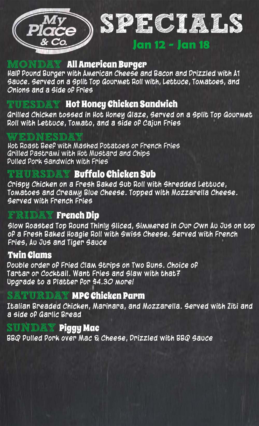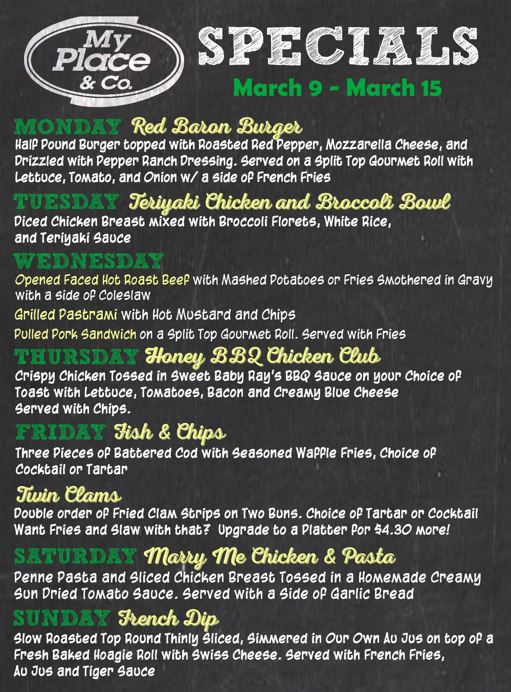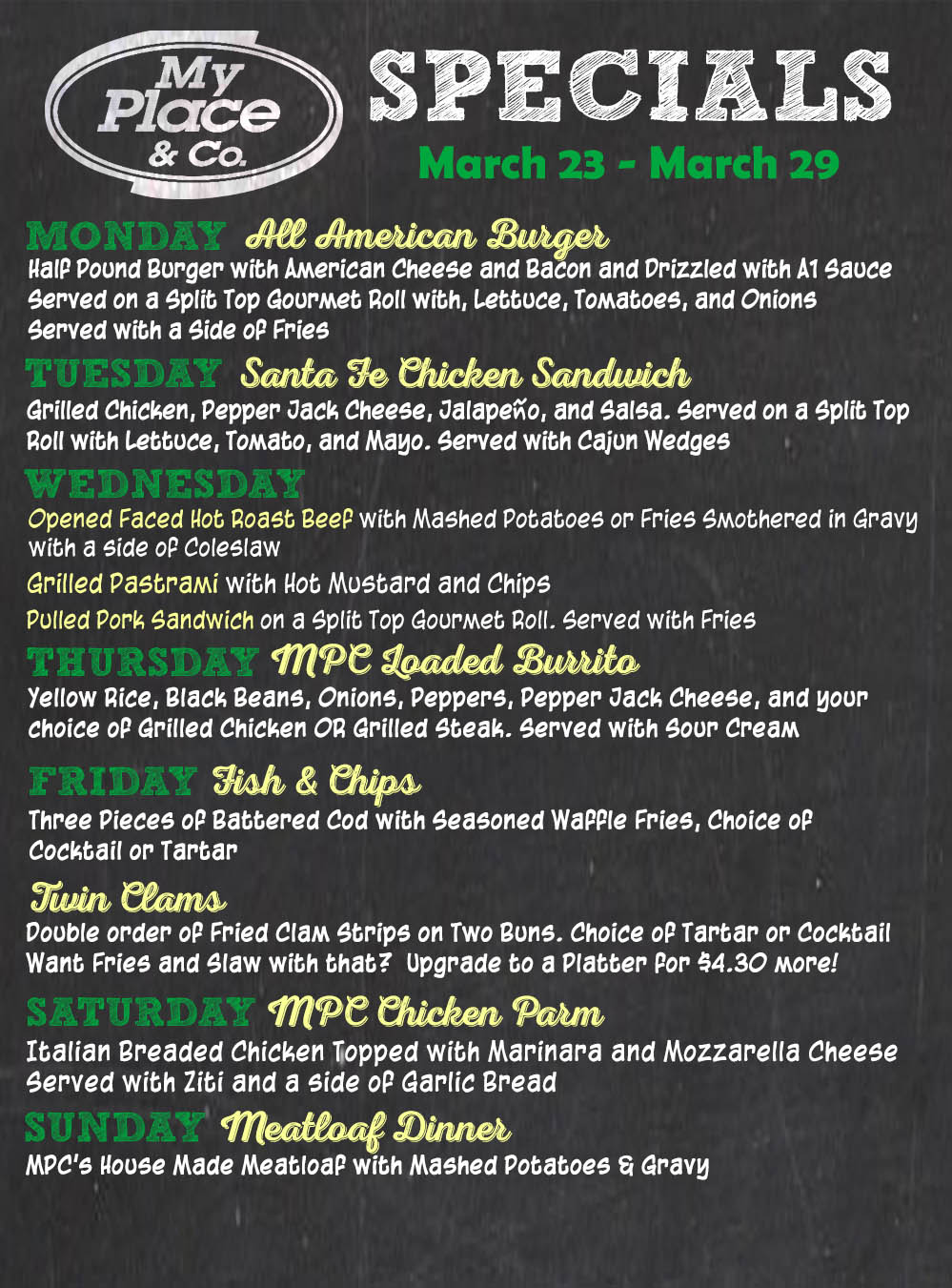 Most importantly, we hold ourselves to the same standards Momma Giacone set back in the ‘80’s! Giving customers a great value in a fast, friendly environment. We look forward to serving you for the generations to come and remember, My Place is YOUR PLACE too!
