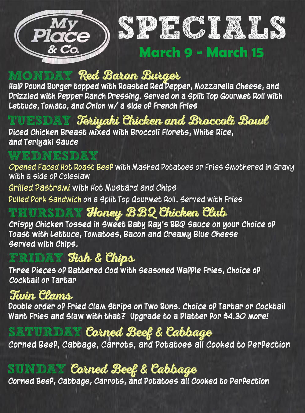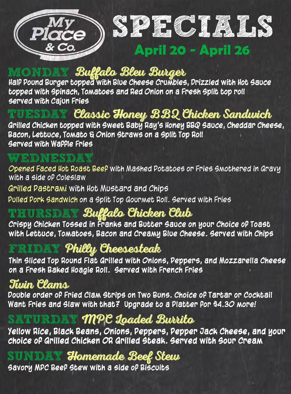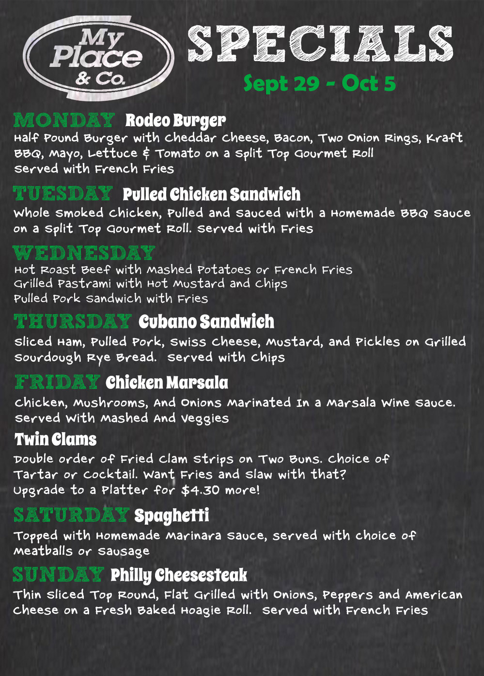Most importantly, we hold ourselves to the same standards Momma Giacone set back in the ‘80’s! Giving customers a great value in a fast, friendly environment. We look forward to serving you for the generations to come and remember, My Place is YOUR PLACE too!