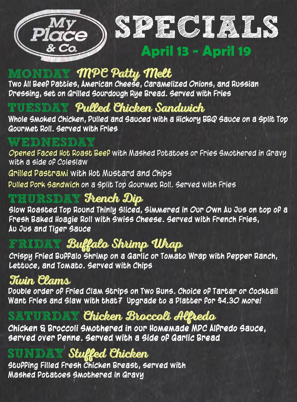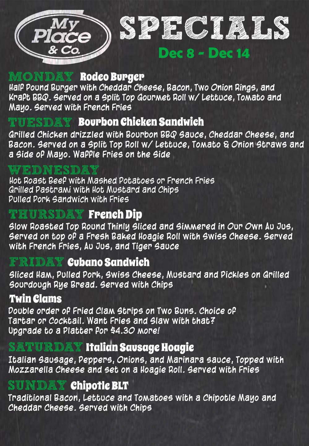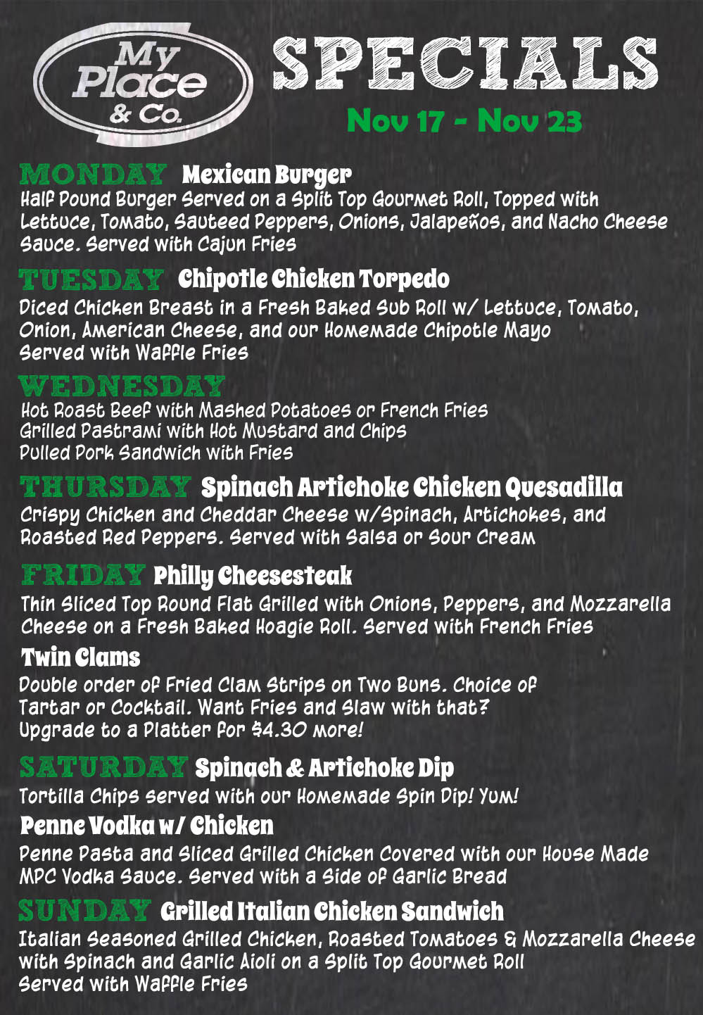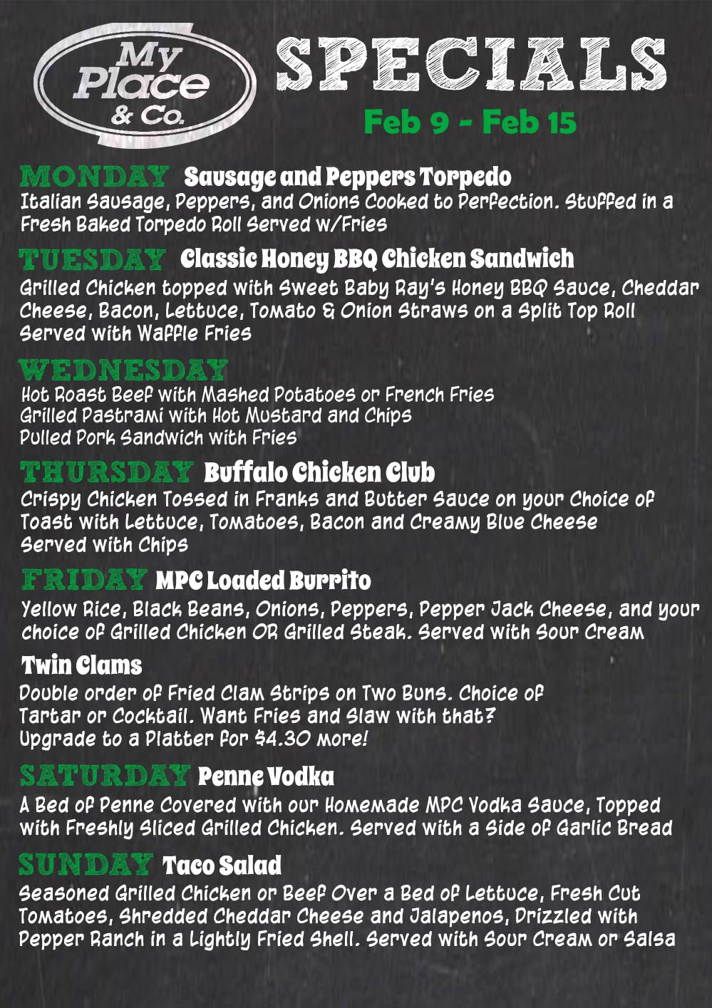 My Place & Company in Schodack, NY is a local favorite known for its welcoming atmosphere, cold drinks, and hearty pub-style fare. Whether you’re stopping in for a bite, catching the game, or enjoying live music, it’s the kind of place that feels like home.