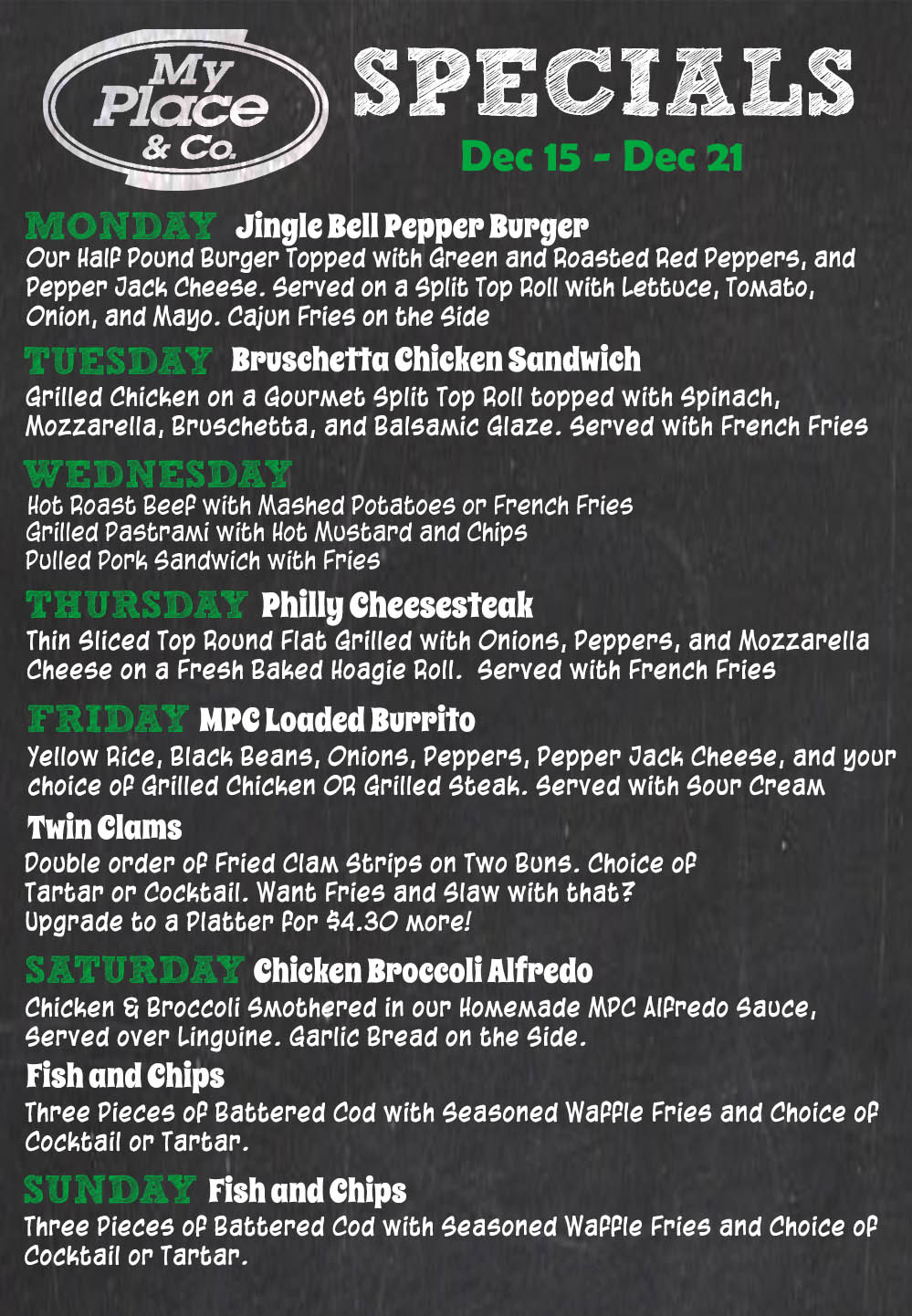 Back in 1982, Noreen A. Giacone opened My Place & Company in Delmar, NY with design by Phillip J. Giacone. The Mission was to serve quality food and drink at affordable prices. From the beginning, My Place & Co. has been a favorite place to enjoy a quick lunch, a family dinner or watch the game with friends.